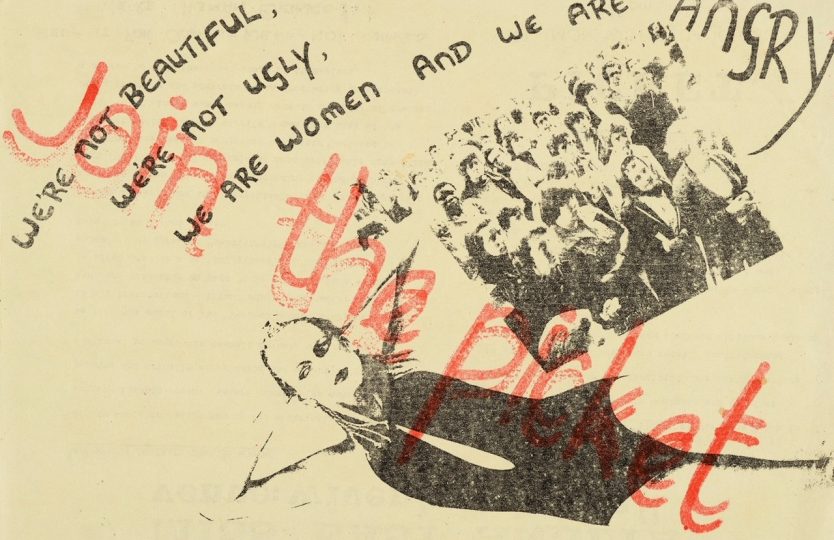 Photo on website banner: Flier given from the picket and occupation of Miss Anglia contest 1981. Courtesy of Albert Sloman Library, University of Essex